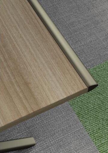 材质说明:E1级绿色环保密度板基材,木纹纸饰面,反鸭嘴斜边工艺,桌面手感舒适,桌面配铝合金过线盒,优质钢架,进口五金配件,保修五年。
